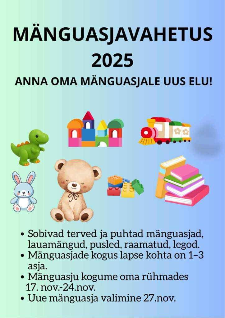 Võtame osa Rohelise Kooli mänguasjavahetuskampaaniast, et anda mänguasjadele uus elu ning õpetada lastele teadlikku tarbimist ja taaskasutust.